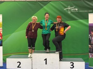Besonders erfolgreich verlief das Turnier für Elke Kropp vom TFC Nürnberg. Sie sicherte sich den Deutschen Meistertitel im Ü50-Mixed, gewann zudem Gold im Seniorinnen-Doppel und rundete ihre Medaillensammlung mit Bronze im Seniorinnen-Einzel ab.
